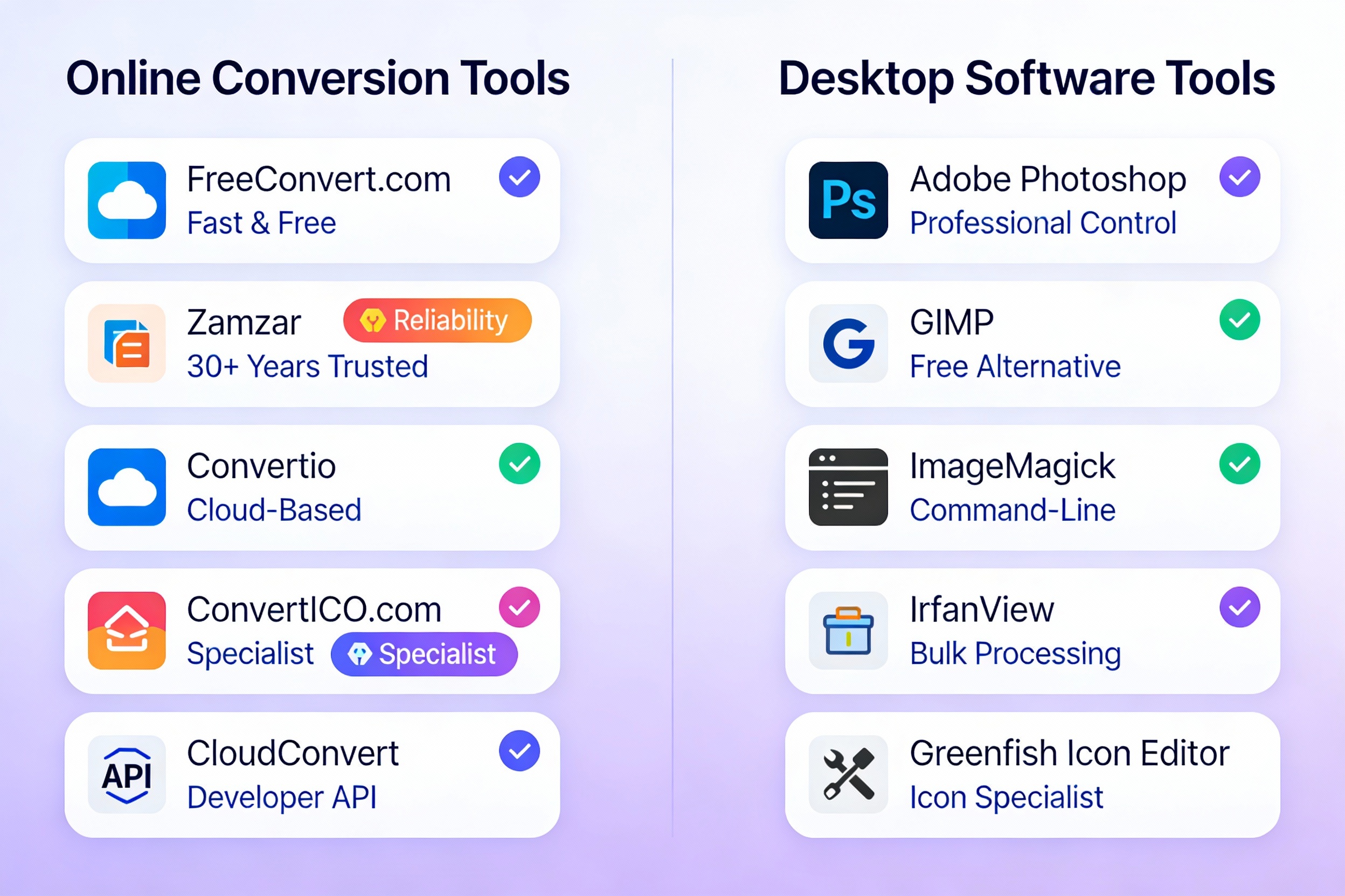 If you prefer working offline, several desktop applications can help you convert PNG to ICO: