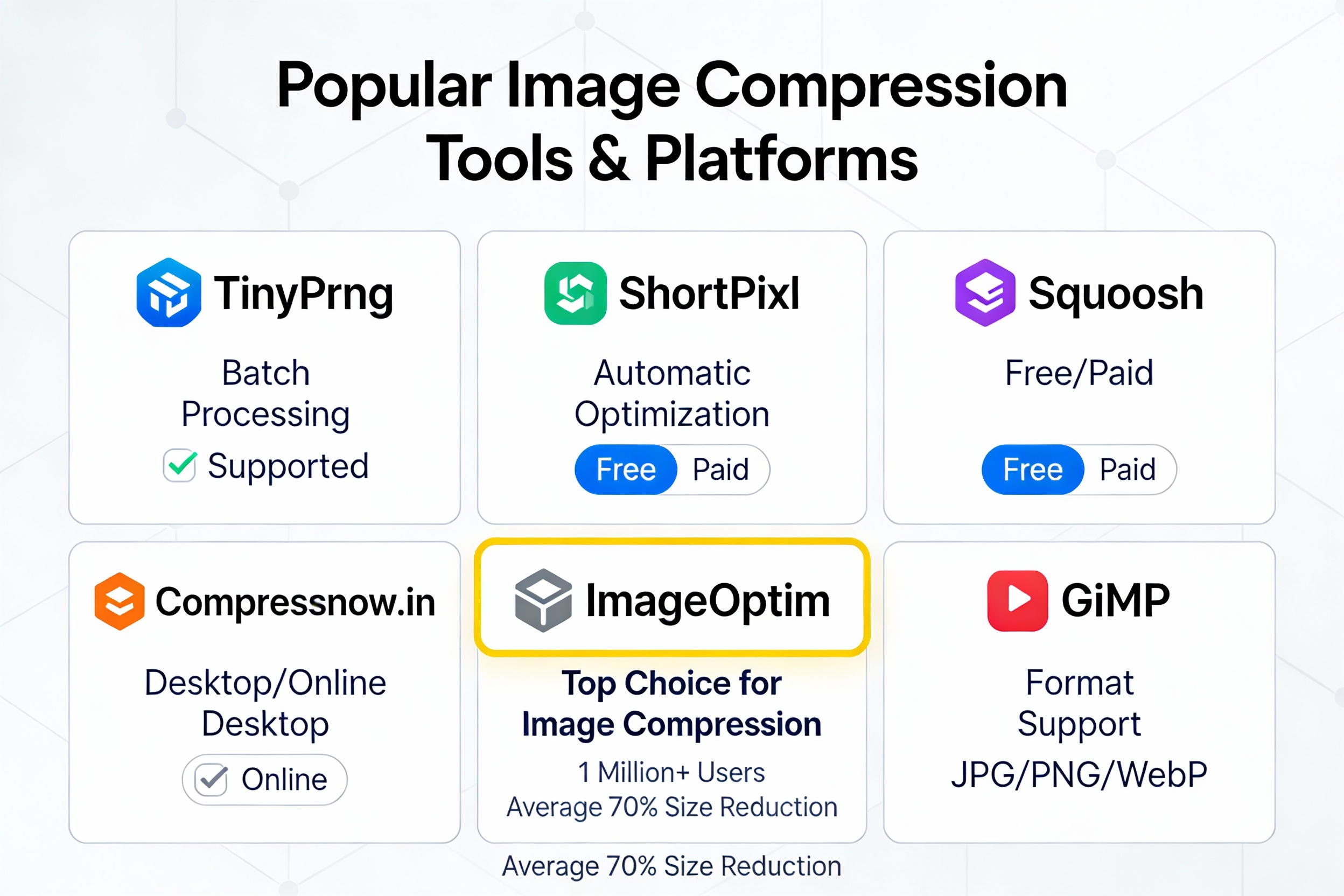 For users managing large image libraries, desktop applications offer advantages over online tools. ImageOptim for Mac provides automatic image file size reduction by stripping unnecessary metadata and optimizing compression settings. Caesium offers cross-platform support and batch processing capabilities, allowing you to reduce image size for hundreds of images simultaneously with customizable compression settings.